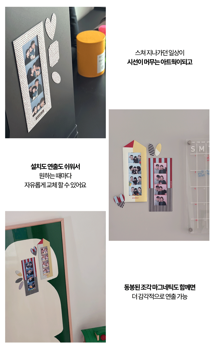 ⚠️ 조각 마그네틱은 재고 소진시 까지 프레임 1개당 3종 무상 제공 됩니다. 선택한 프레임과 동일한 테마 내에서 형태는 랜덤 구성 됩니다. 무상 제공 특성상, 이로 인한 교환 및 반품은 어려운 점 양해 부탁 드립니다. (*하우스/스트라이프 조각 마그네틱은 재고 소진 되었습니다)