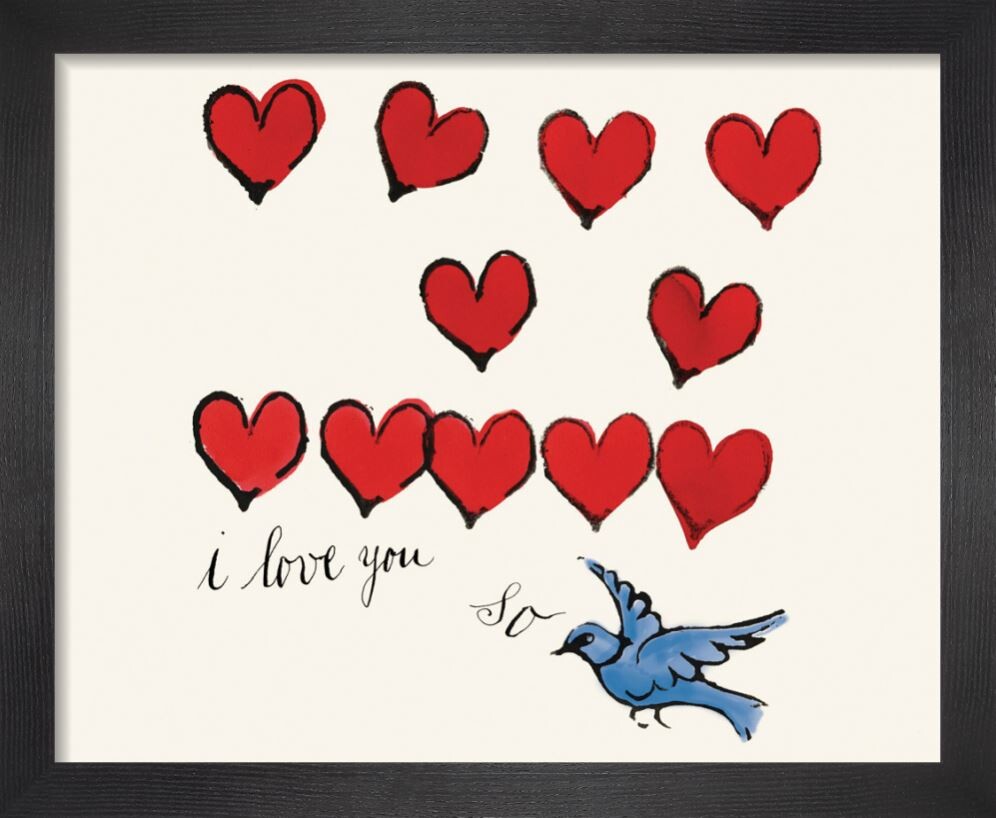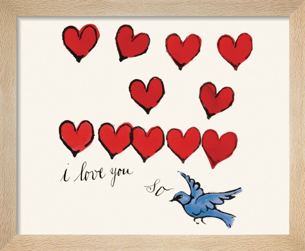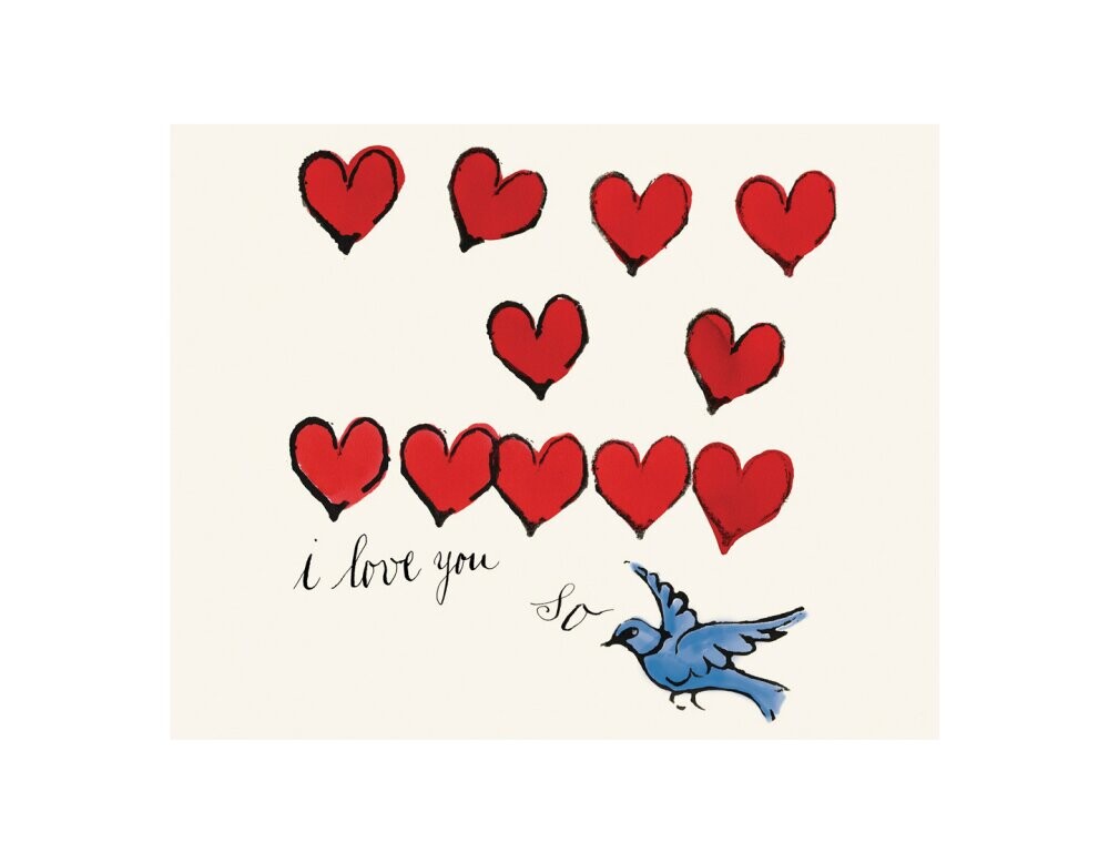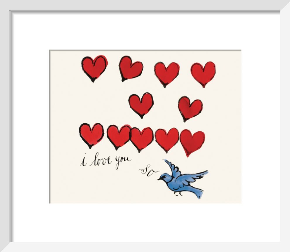 강렬한 레드 컬러의 하트와 푸른 새의 색감의 조화도 좋고