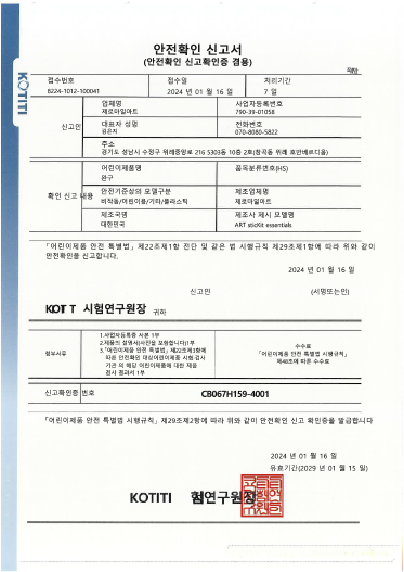 ART SCAPE & sticKit KC 어린이 안전 확인 신고 완료