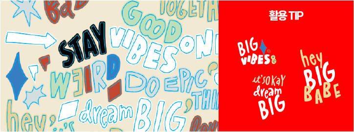 아이의 일상을 조금 더 풍부하게 표현하기 위해서는 엄마와 아빠의 마음을 담은 워딩들이 필요 하겠죠. 아이에게 해주고 싶은 이야기를 주제로 진심을 담되 뻔하지 않은 말들로 구성했어요. 숫자와 알파벳도 준비했으니 기념일, 이름, 문구 등으로 특별함을 더해보세요.