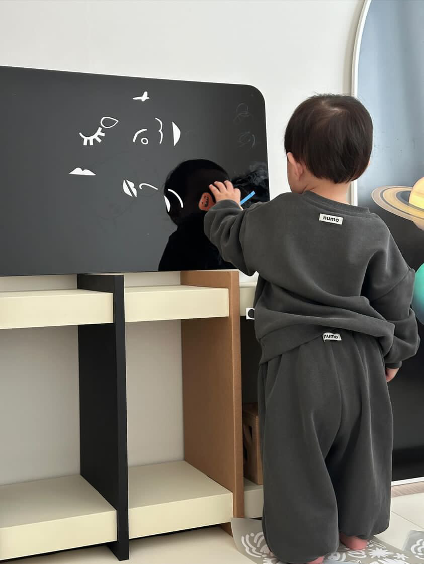 필요에 따라 구입하고 버려지는 일회용 의상, 소품 등이 많으시죠? 비싼 비용을 줬음에도 결국 남는 건 인스타용 사진 몇 장 뿐이라 아쉬우셨죠? 저희는 사진 한 장에 용도를 다하고 싶지는 않았어요. 거울 앞에서 세상을 보던 아기가 어느 덧 뒷면의 보드를 이용해 메모하고 공부하는 모습도 보실 수 있도록 더 나아가 엄마 아빠의 공간에 둘만큼 탐나는 디자인으로 준비했어요.