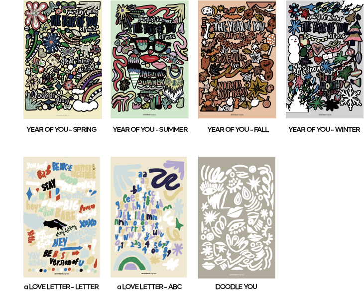 봄, 여름, 가을, 겨울. 뚜렷한 4가지 계절을 아이에게 이야기해주고 싶은데 생각보다 보면서 나눌 무언가들이 없죠? YEAR OF YOU는 그런 엄마들의 마음을 담아 아이와 함께 4계절을 함께 즐겨볼 수 있도록 계절 마다의 특색 있는 아이템과 소재를 활용해 스티커로 만들었어요. 집안 곳곳 어디든 쉽게 붙였다 떼어보면서 집 밖의 4계절의 느낌을 집 안으로도 들여보세요.