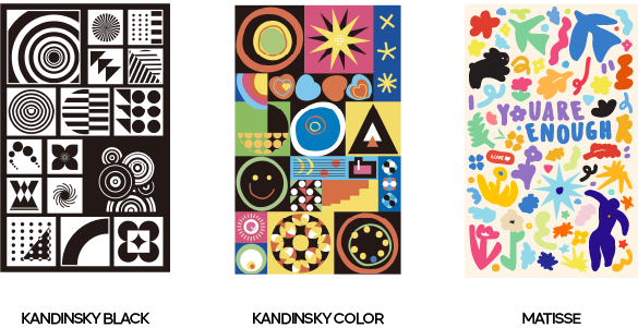 비더 아티스트 시리즈는 작품에 대한 감상을 직접 만들어 보는 경험으로 이어갈 수 있도록 작가의 작품 속 요소를 해체하고 재결합해 현대적 형태와 컬러로 구현한 리무버블 스티커 라인입니다.