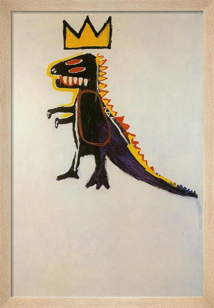 자신의 시그니처인 왕관을 쓴 공룡을 만화처럼 표현한 작품으로